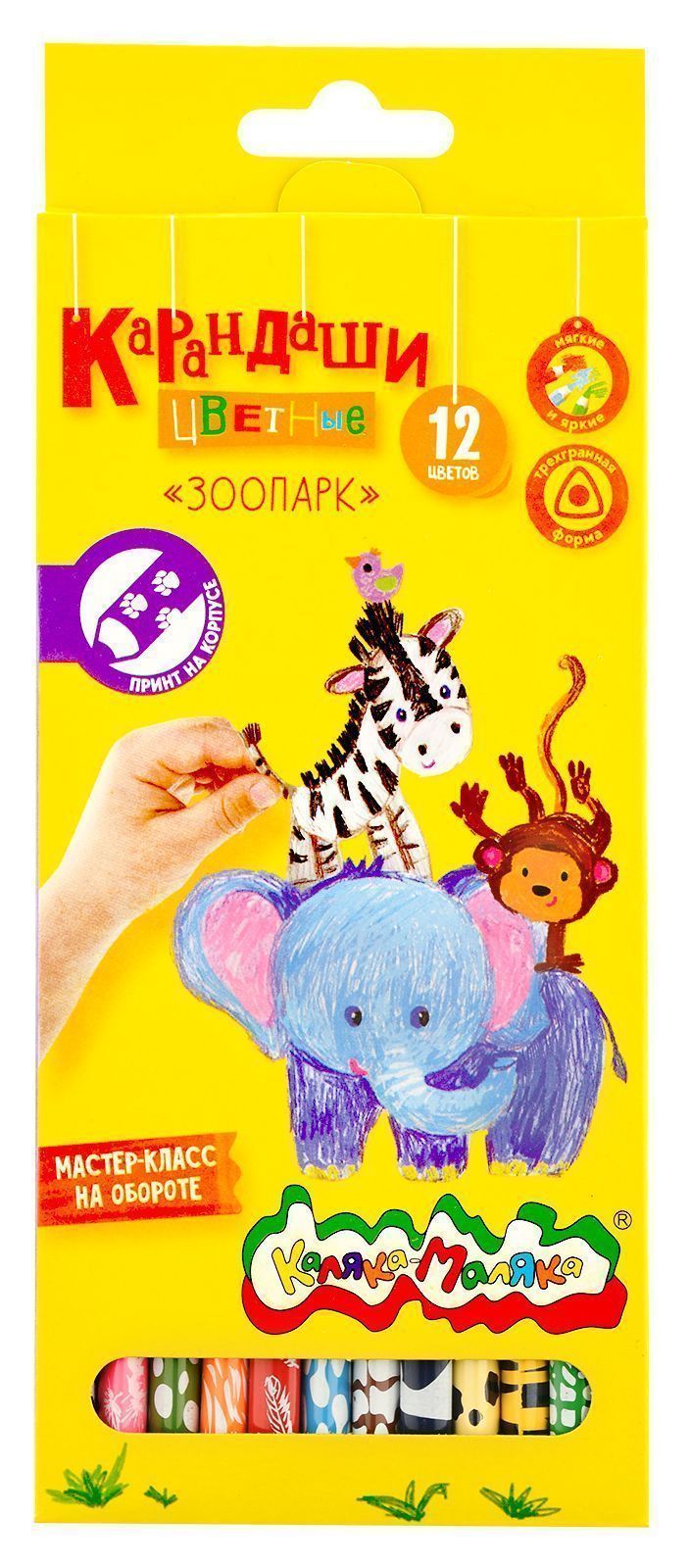 Цветные карандаши Каляка-Маляка "Зоопарк" 12 цветов трехгранные с принтом на корпусе