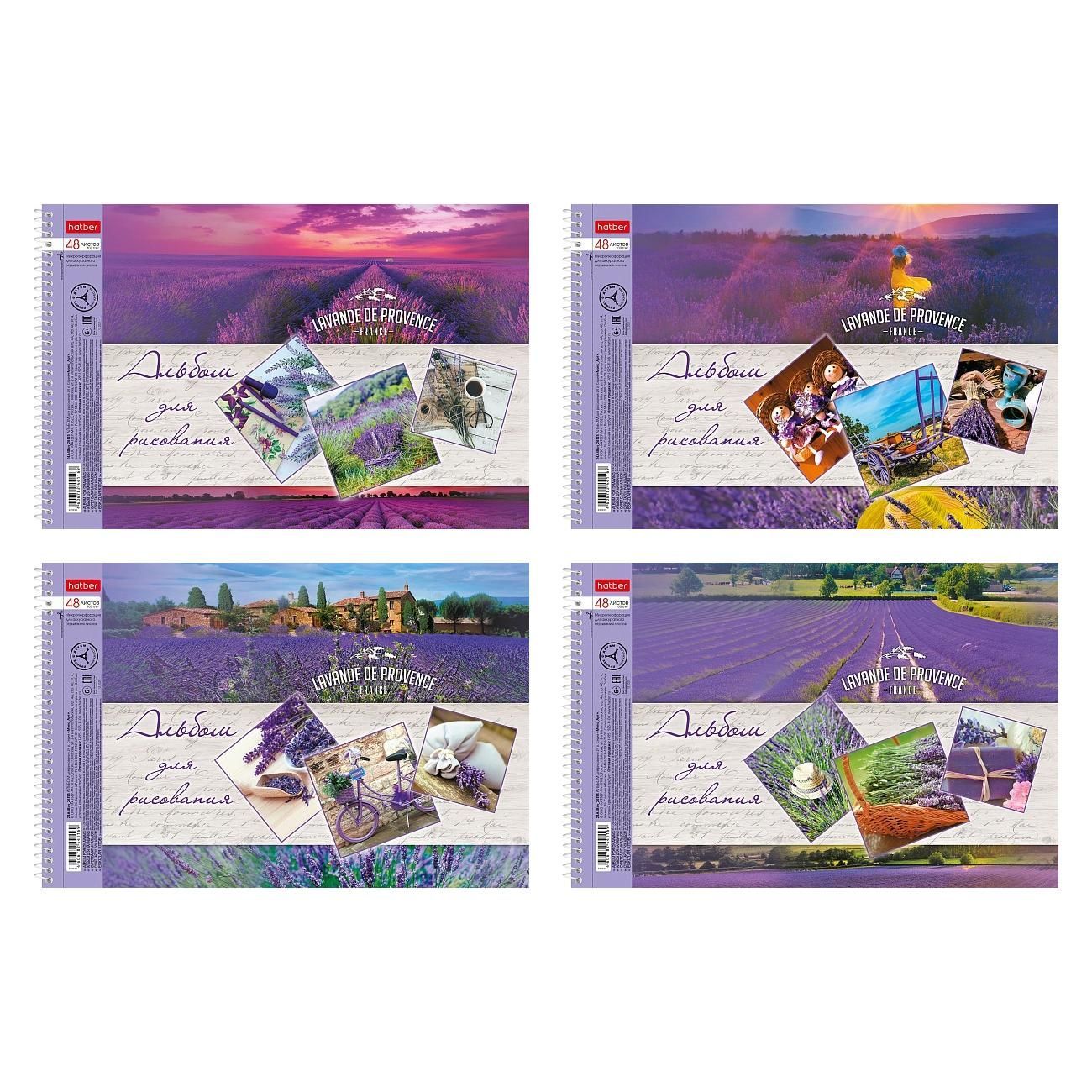 АЛЬБОМ для рисования 48л А4ф перфорация на отрыв на спирали 4 диз.в блоке тиснение серия -Лавандовые поля-