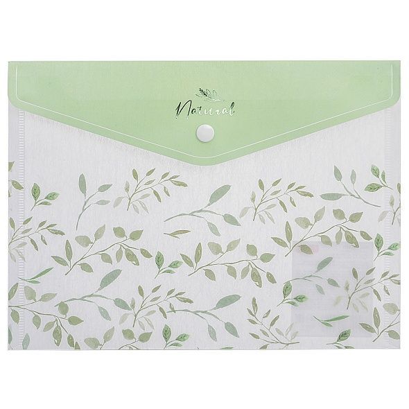Папка-конверт Пластиковая на кнопке А5ф 180мкм текстура с печатью NATURAL LEAVES