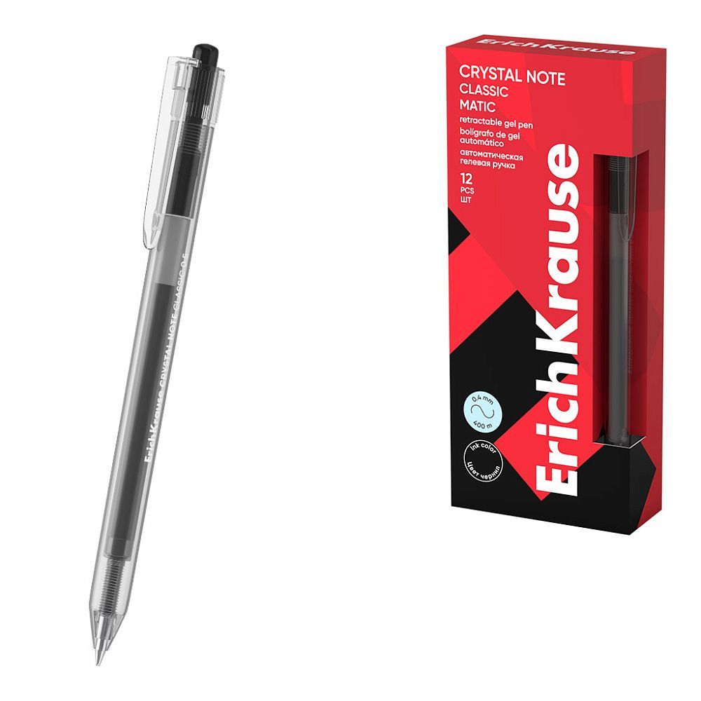 Ручка гелевая автоматическая ErichKrause Crystal Note Matic Classic 0.5, цвет чернил черный