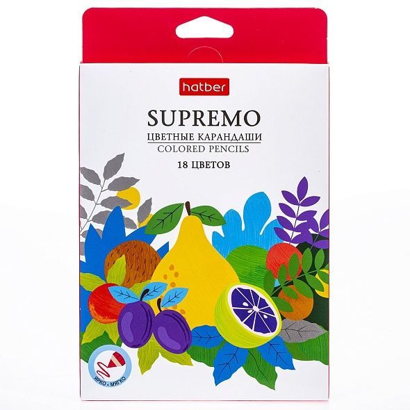 Карандаши цветные Hatber шестигран.корпус мягкий стержень 18 цв.-Supremo- в картонной коробке