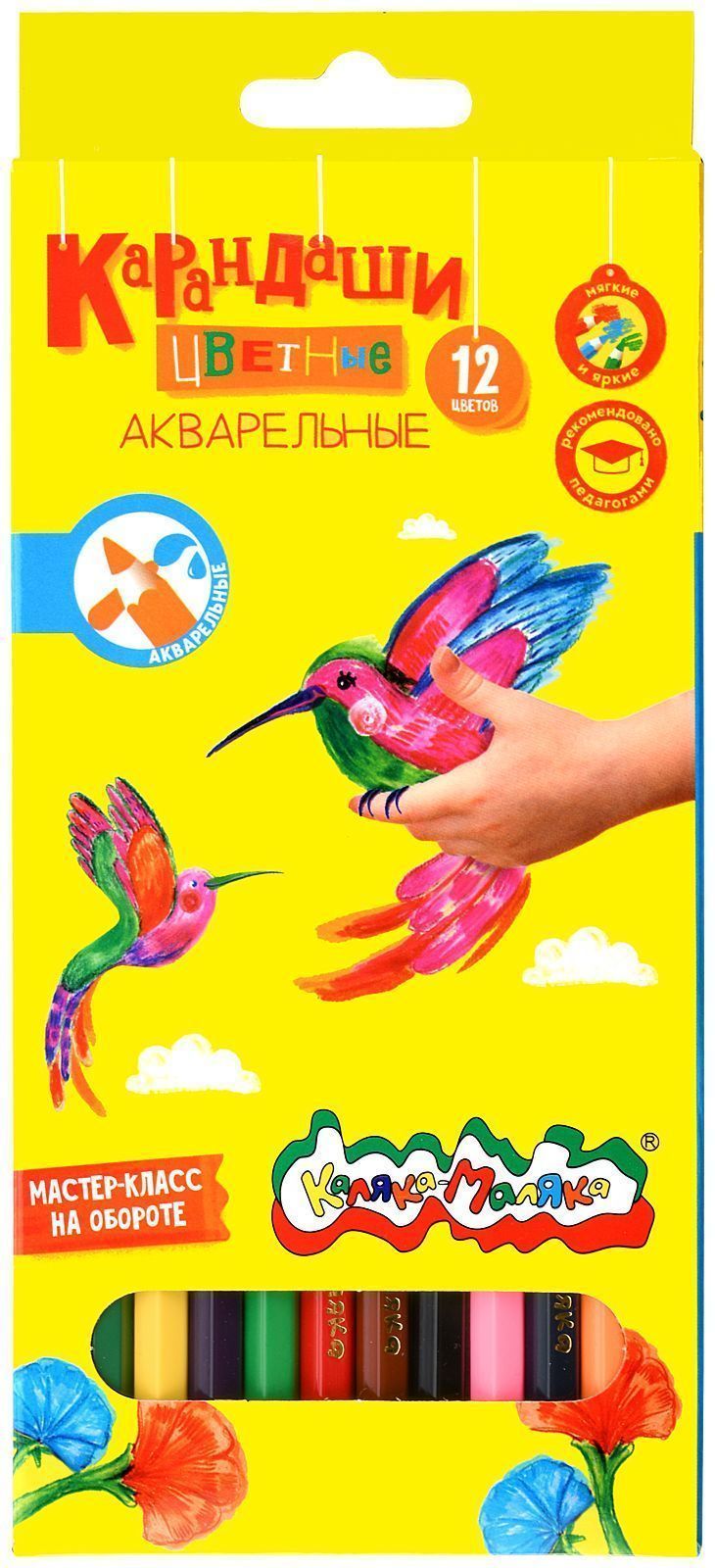 Набор акварельных карандашей Каляка-Маляка 12 цв. шестигранные, деревянные, супермягкий грифель, в картонной упаковке