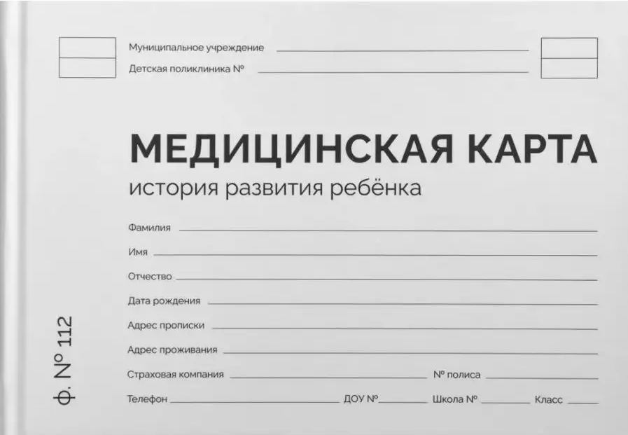 Амбулаторная карта ребенка Форма №112