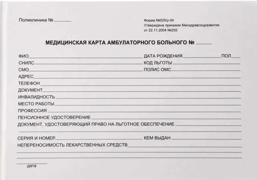 Медицинская карта амбулаторного больного (для взрослых)