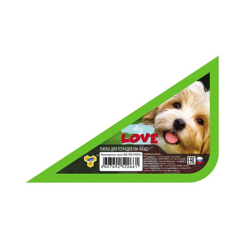 Папка для тетрадей А5 молния сверху, пластик, с уголком, 230/190/50 ЛЮБИМЫЙ ЩЕНОК
