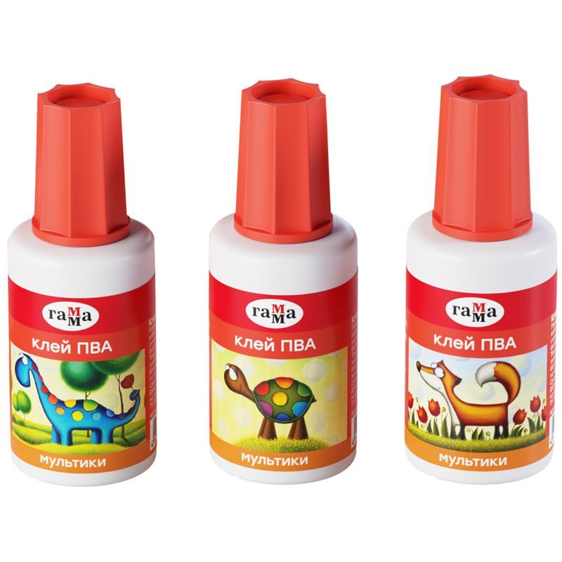 Клей ПВА с кисточкой Гамма "Мультики", 20г