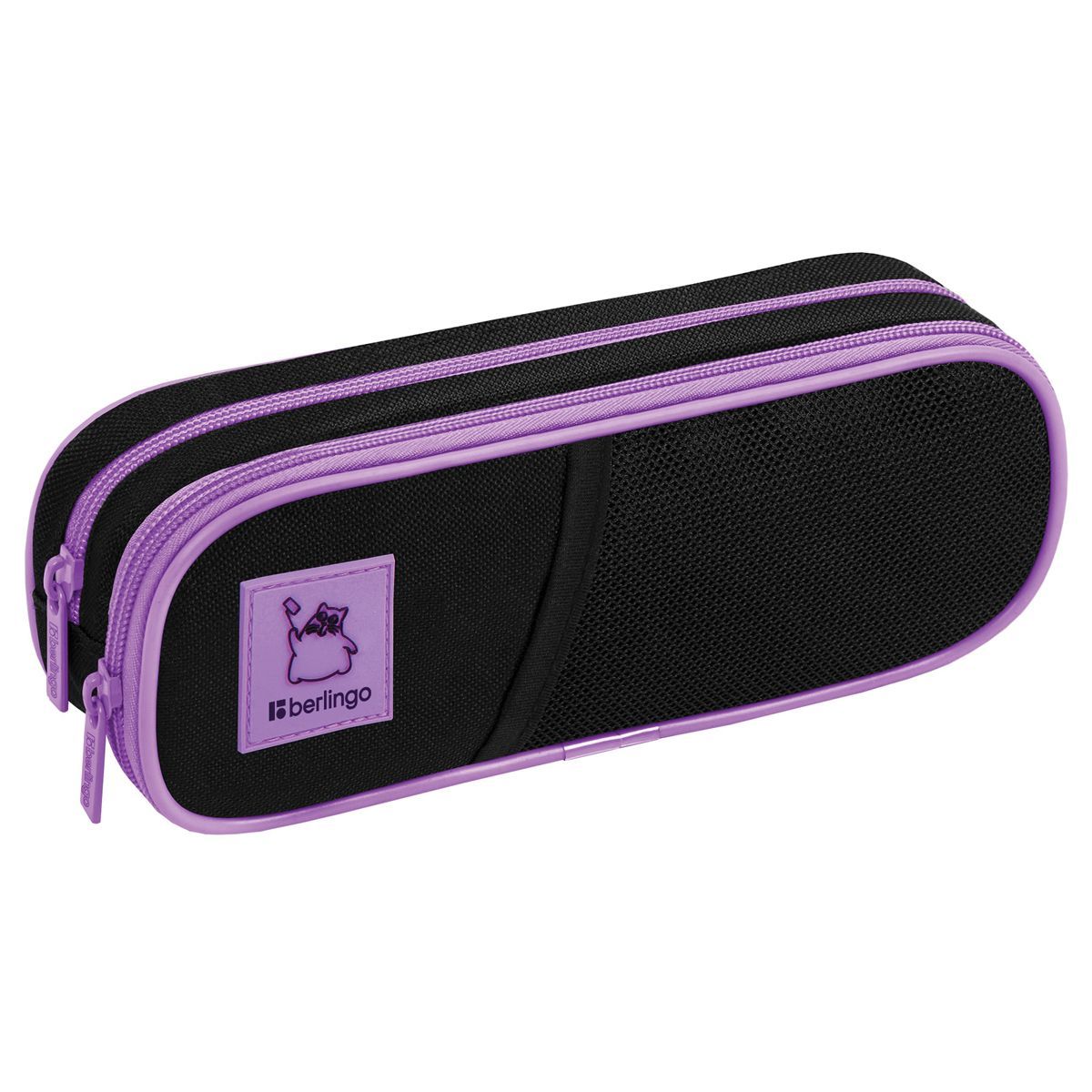 Пенал мягкий 2 отделения, 220*80*50 Berlingo "Working cat", полиэстер, внутренний органайзер