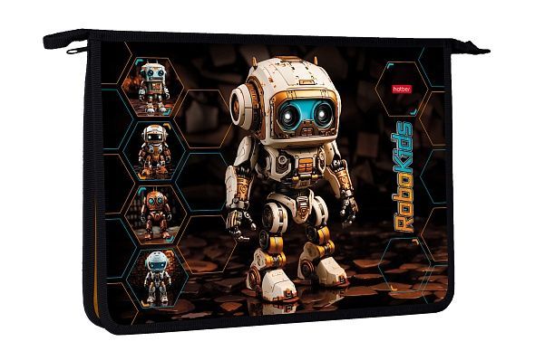 Папка для тетрадей Пластиковая 2 отделения с вкладышем А4ф Hatber на молнии 245х340х75мм -Робо- в индив.упак.