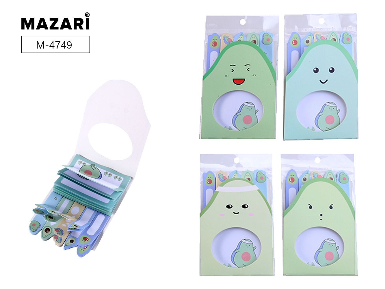 Набор блоков для записи с липким слоем 8х12 см (5 блоков полос, 1 прямоугольный блок по 15 листов), 4 дизайна в ассортименте