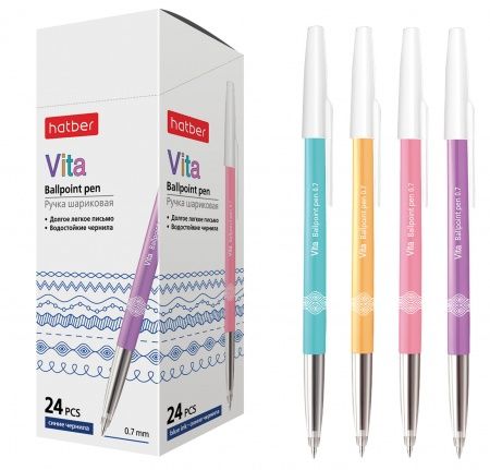 РУЧКА Hatber шариковая Vita-Ассорти- Синяя 0,7мм чернила на масляной основе