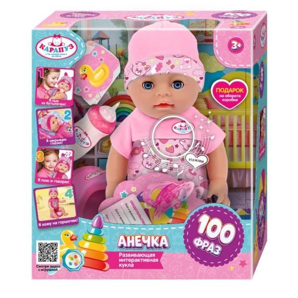 Пупс озвуч Шаинский музыка 25 см, пьет, писает, закр. глазки, 4 акс КАРАПУЗ