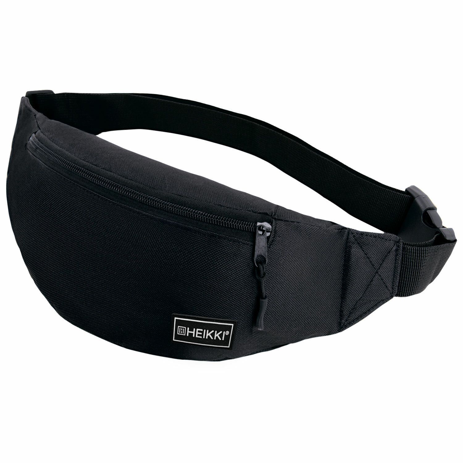 Сумка на пояс HEIKKI RIO (ХЕЙКИ), два отделения, регулируемый ремень, черная, 38х12х8см, 272614