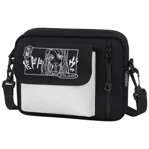 Сумка на плечо HEIKKI SELFIE (ХЕЙКИ) два кармана, черная/белая с принтом, 17х22х6 см, 272635